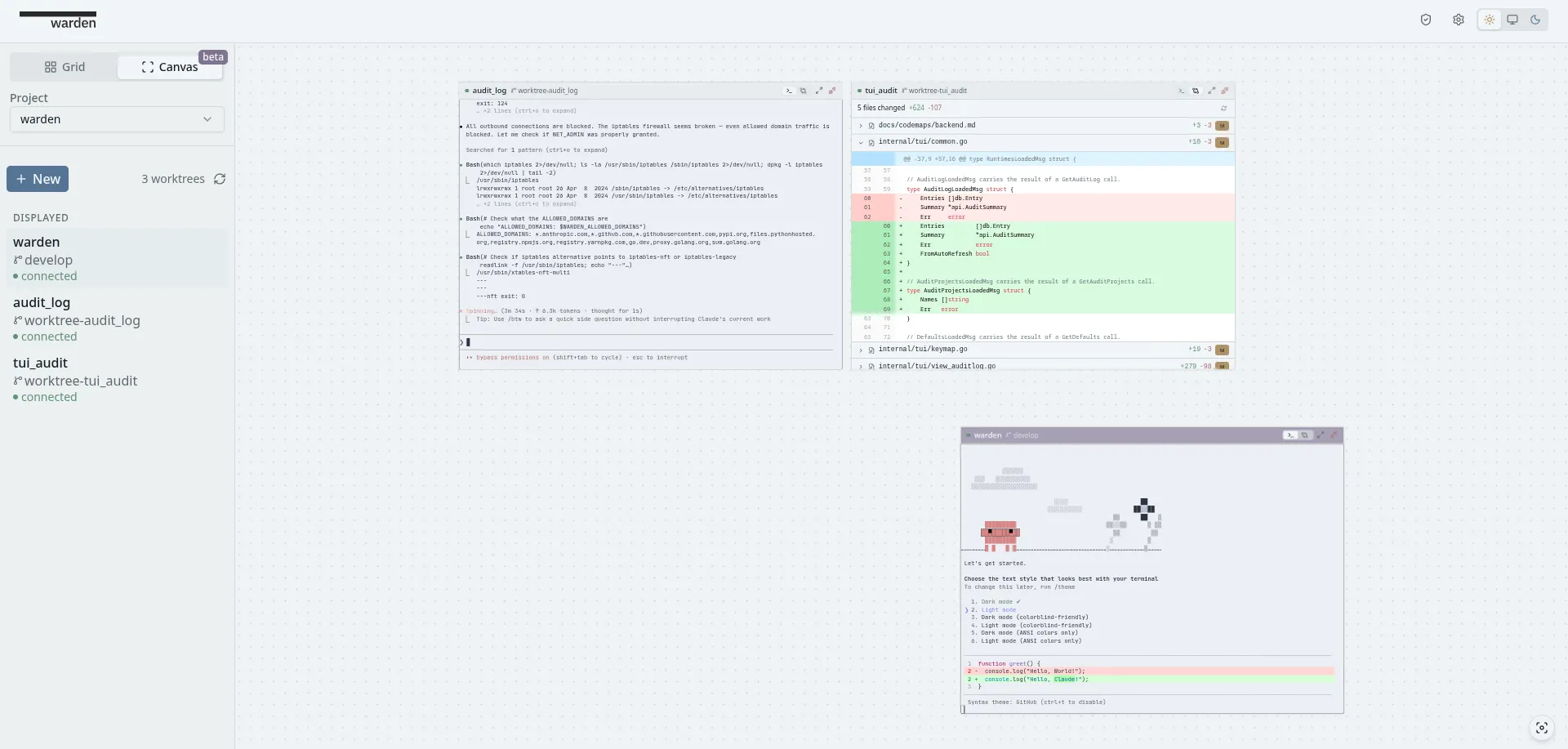 browser UI. Terminal UI (warden-tui) runs natively in your terminal.